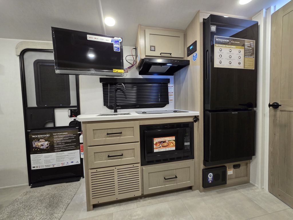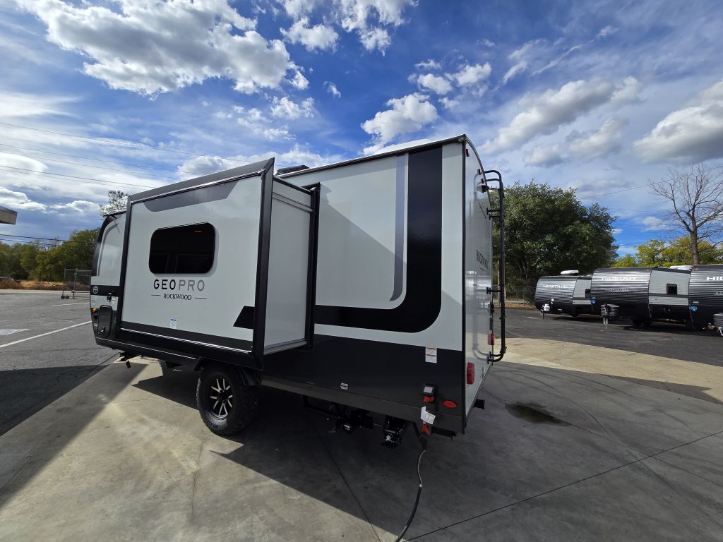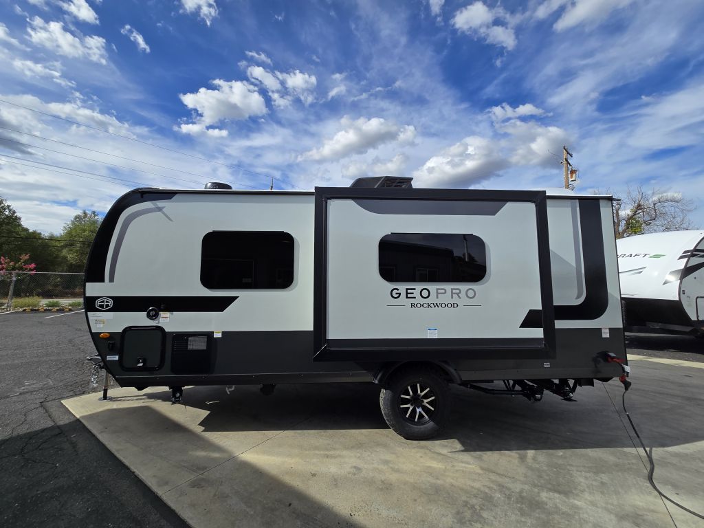 The 2026 Rockwood Geo Pro 20FBS is a lightweight travel trailer that combines modern style with easy towing. Featuring a spacious rear bathroom, a slide-out with theater seating or sofa, and a front queen bed, this model is designed for comfort in a compact size. Enjoy a fully equipped kitchen, o...