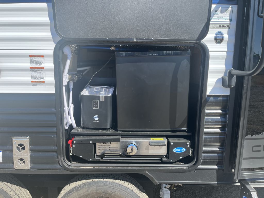 The 2026 Forest River Cherokee Grey Wolf 26KF is a spacious travel trailer designed for families and adventurers who want comfort on the road. Featuring a private front king bedroom, a large slide-out for added living space, and a modern kitchen, this model delivers style and function. Enjoy a ro...