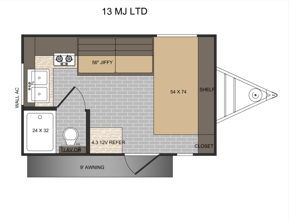 • 4.3 12 VOLT REFER, 2 BURNER STOVE, DSI GAS WATER HEATER, 5K BTU A/C, 16K BTU FURNACE, MICROWAVE