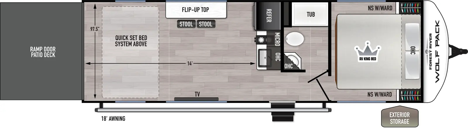Your search is over! You have found the most affordable and versatile, full-featured toy hauler bunkhouse on the market. Why do we say bunkhouse? Because the Cherokee Wolf Pack is a toy hauler that converts to a bunkhouse in a matter of minutes.