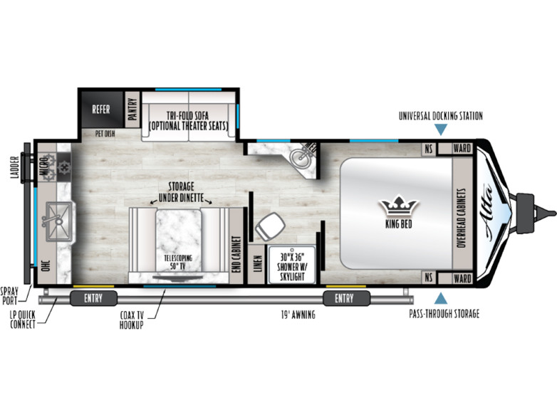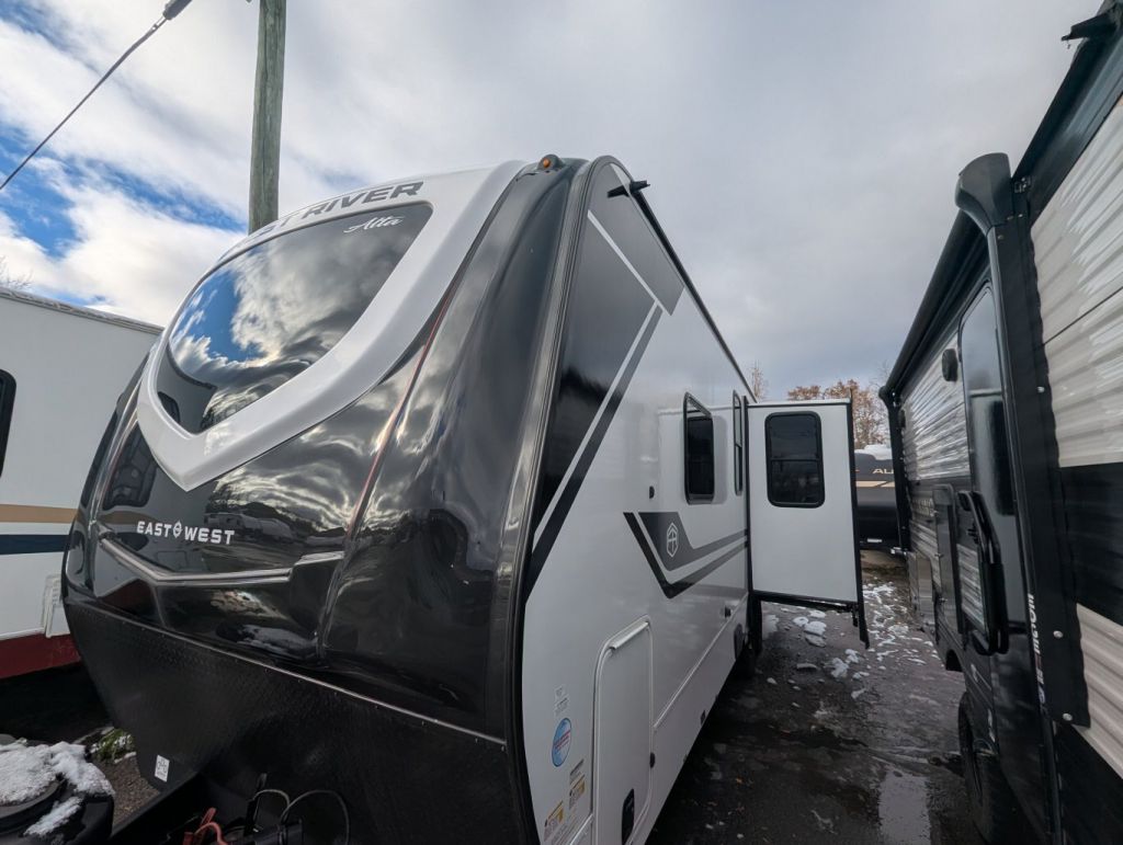 If you’re looking for a travel trailer that feels more like a small apartment on wheels, the East to West Alta 2365KRK is designed to impress. With an impressive 81” interior ceiling height, a residential-inspired 10.7 cu. ft. 12V refrigerator, solid surface countertops, and a king-size bed (wher...