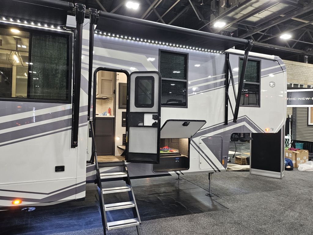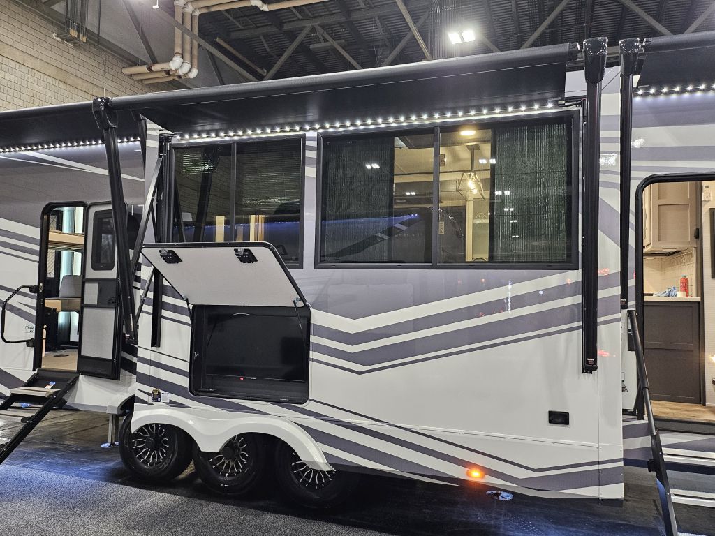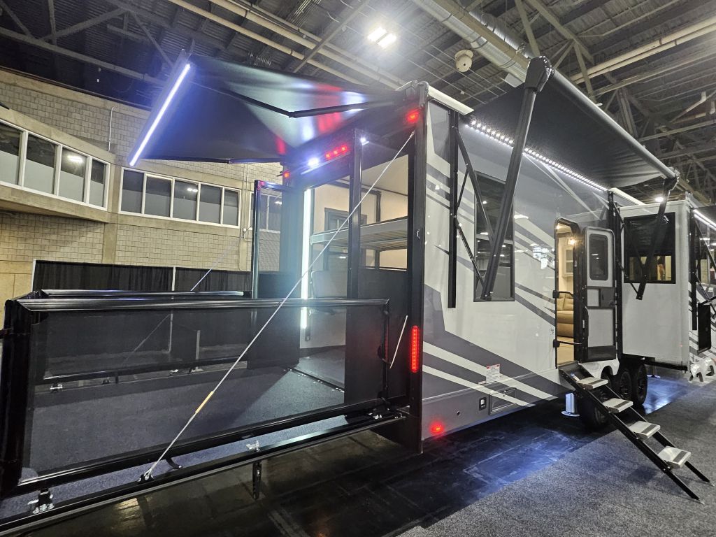 14-Foot Separate Garage: A massive cargo area with 5,000-lb tie-downs, a weatherproof insulated ramp door, and a 40-gallon fuel station to keep your toys running.