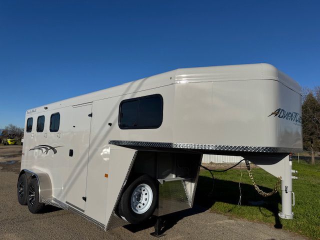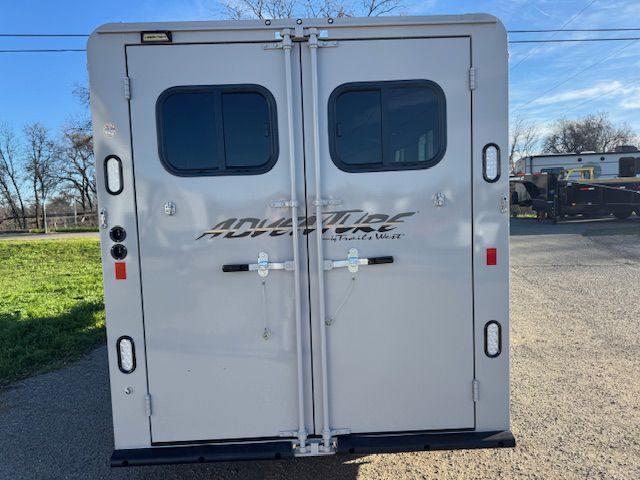 The Adventure is the most economical horse trailer built by Trails West. The Adventure is high in standard features with a feasible cost, making it one of the best values in the industry. This trailer, with double air gaps on head and tail side is 6'9" wide and 7' tall. It is standard with horse ...