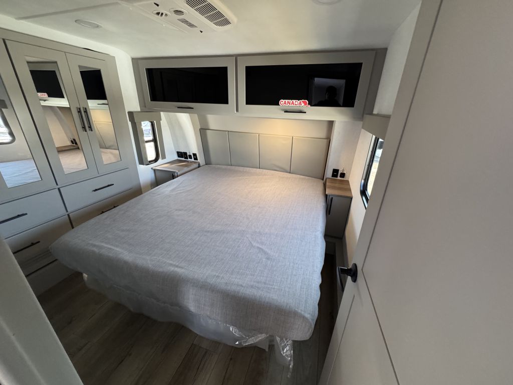 Located toward the front of the coach, the bedroom is a real retreat: