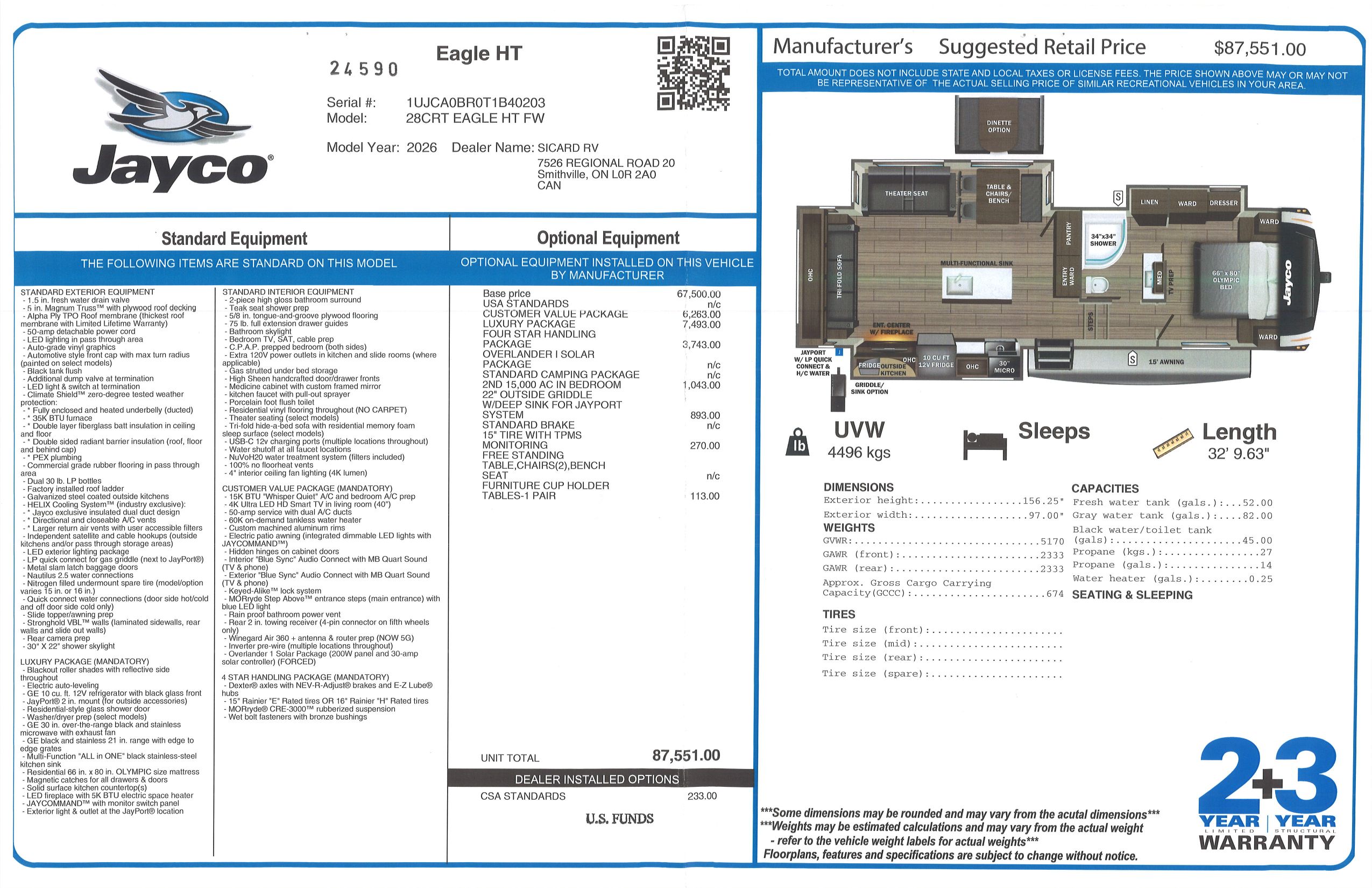 Inside this Eagle HT 28CRT, you will find a tri-fold sofa that converts to another bed for an additional sleeping space when needed. Included with this Eagle HT 28CRT, you will also receive the Outside Griddle for JayPort System option. All Eagle HTs come with a 2 year limited warranty and a 3 year structural warranty, providing you with peace of mind against any defects.
