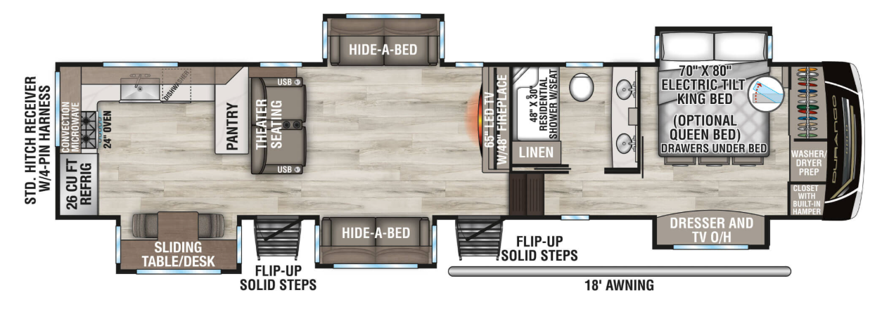 - All Weather Insulation Package (heated, enclosed & insulated underbelly plus foil in floor/roof/front)