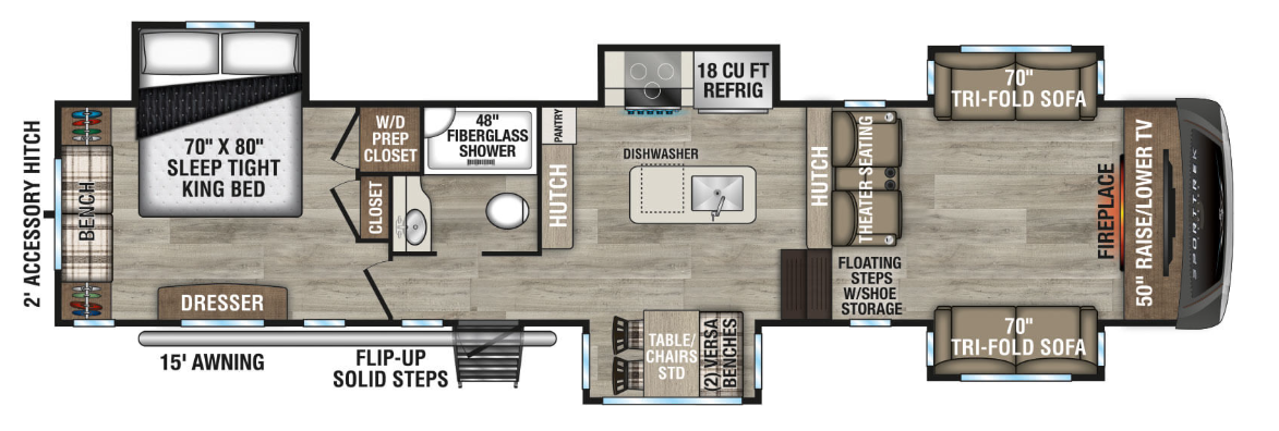 - DELUXE TRI-FOLD SOFA & THEATER SEATS (VBF), KING BED MASTER SUITE (QUEEN 343VBH/VIB)