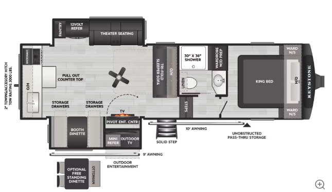- 2” Accessory Hitch (3000lb towing cap 260MLE, 290RLS, 316RLS)
