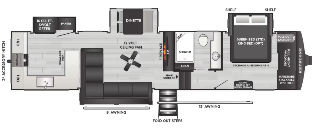 - 2” Accessory Hitch (3000lb towing cap 260MLE, 290RLS, 316RLS)