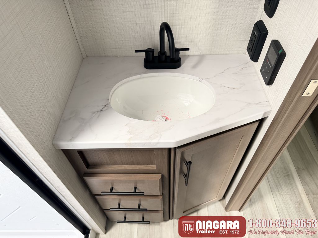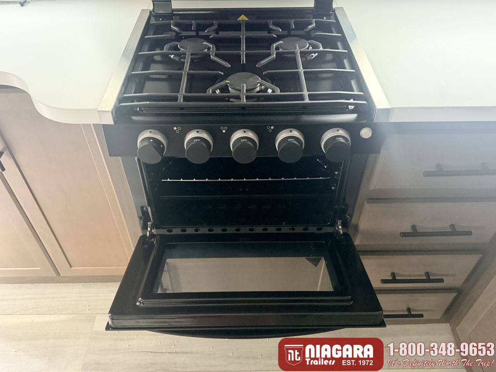 - 17" Furrion® range w/ Piezo ignition and glass stovetop cover