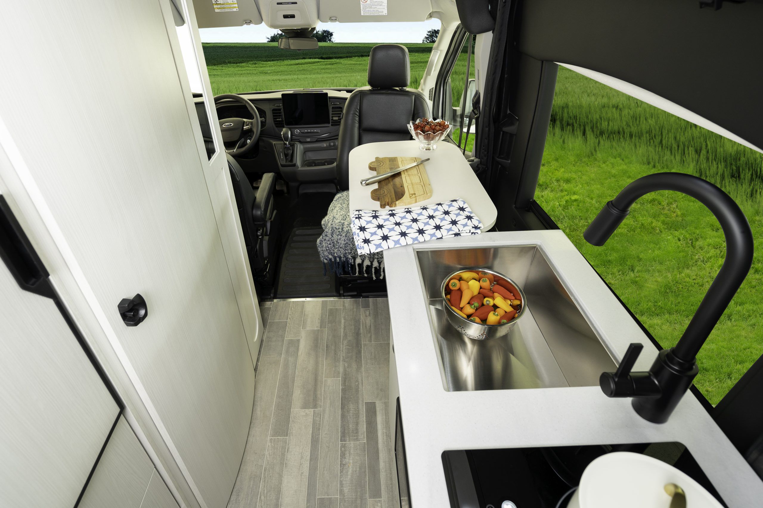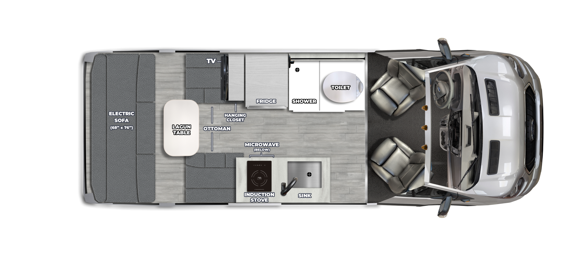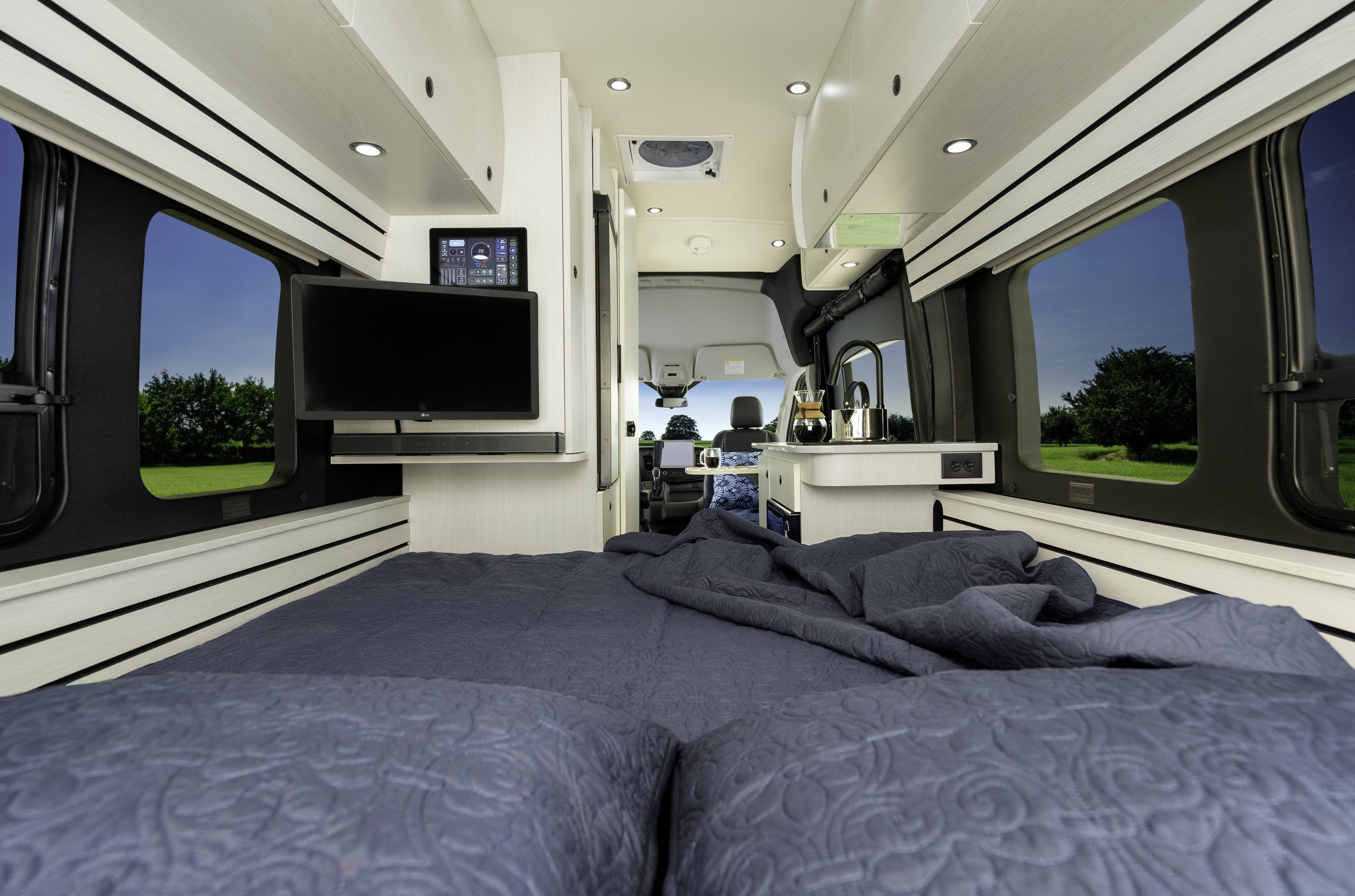 - Water pump, awning, sofa and vent controls