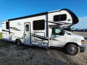 The 2026 East To West Alita 23TK is a Class C motorhome built on the Ford AWD 350 Transit chassis. It is a compact RV, measuring approximately 26 feet long, and is designed for couples or small families. A single slide-out and a cab-over bunk expand the interior living and sleeping space.