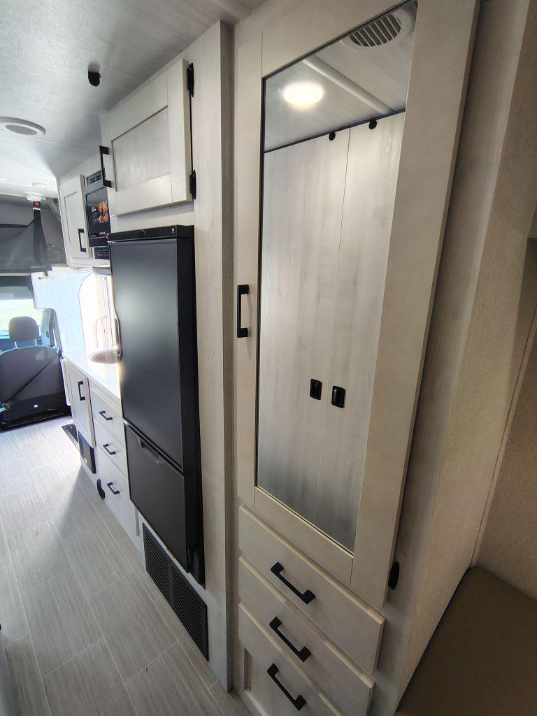 • Technology: Comes with a rear and side-view camera system, a 12V Smart TV, and an integrated antenna with WiFi prep.