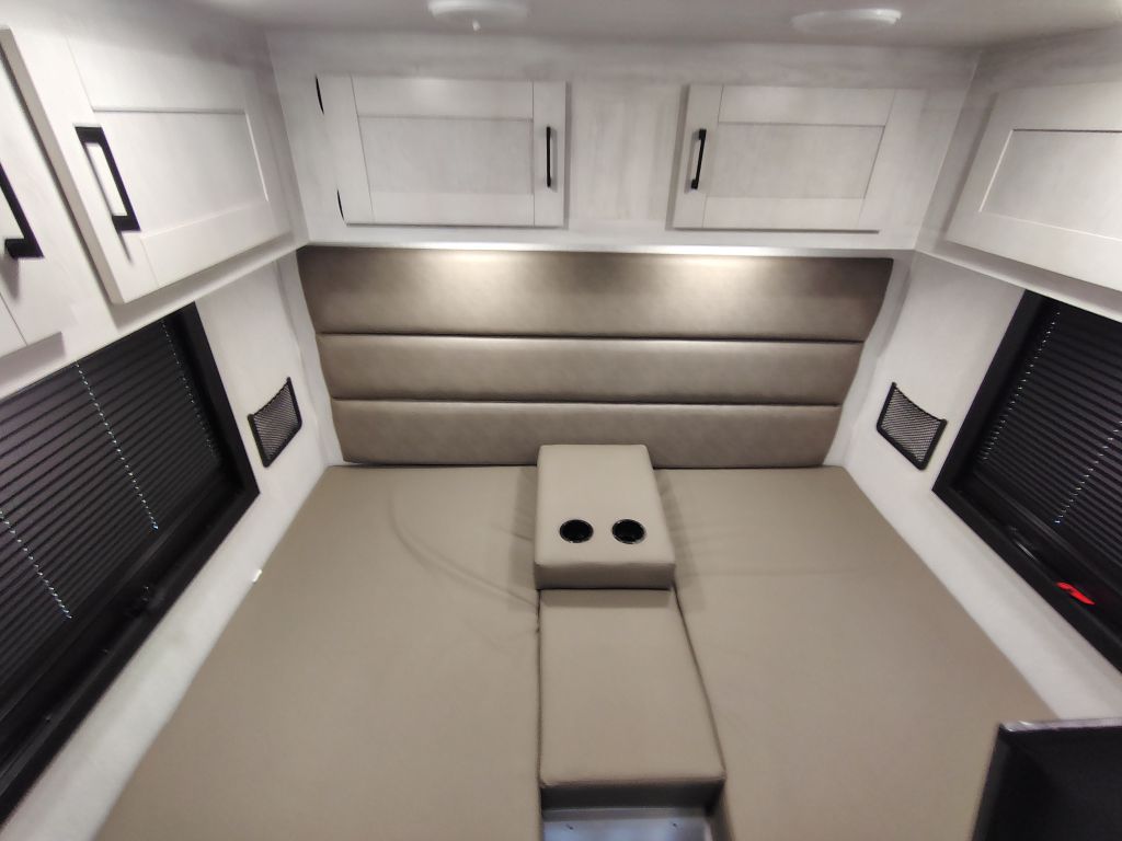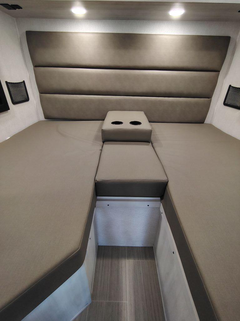 • Sleeping capacity: Sleeps 3–4 people, with a cab-over bunk and twin beds that convert to a king bed in the rear.