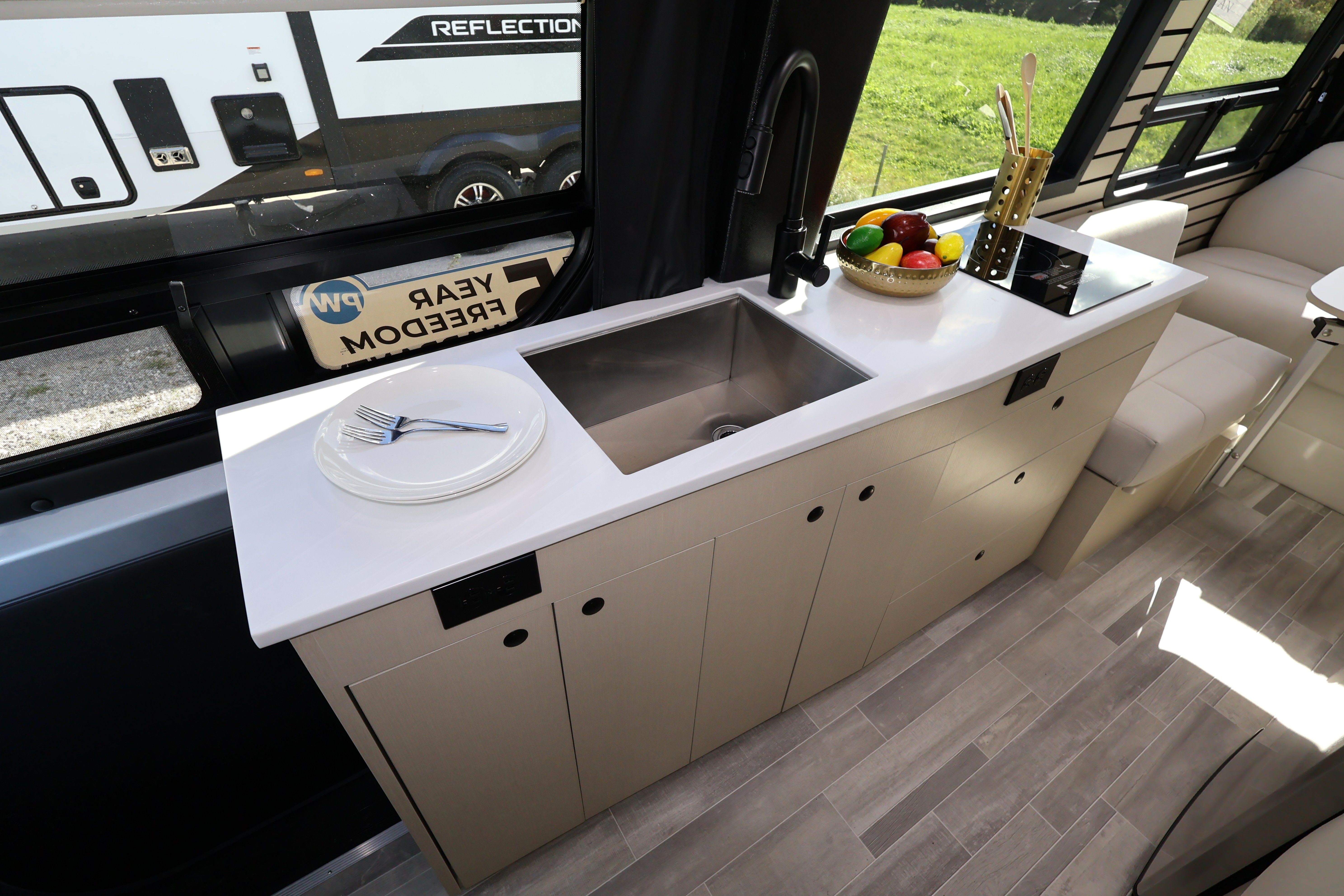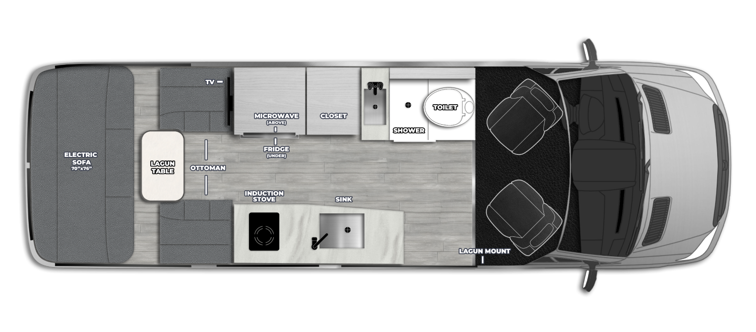- Water pump, awning, sofa and vent controls