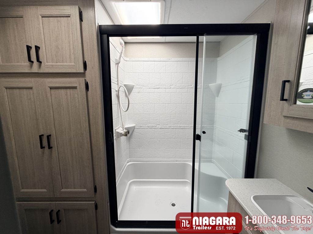 - GLASS STEP-IN SHOWER W/ABS SURROUND