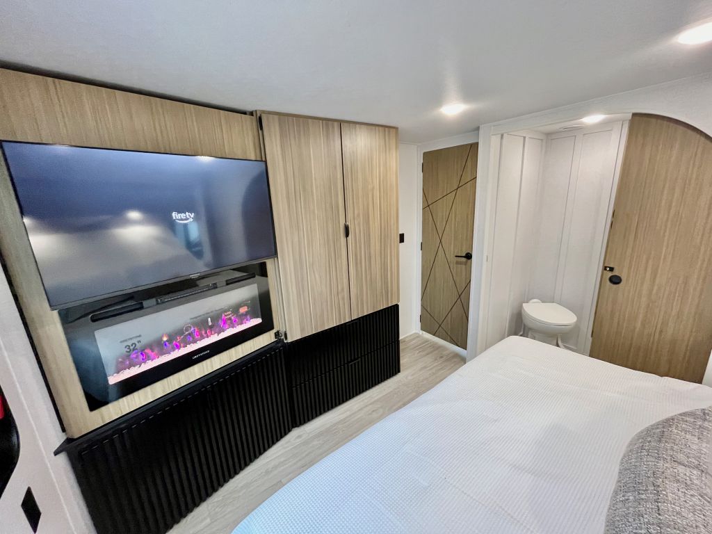 - Bedroom with 2nd fireplace and TV