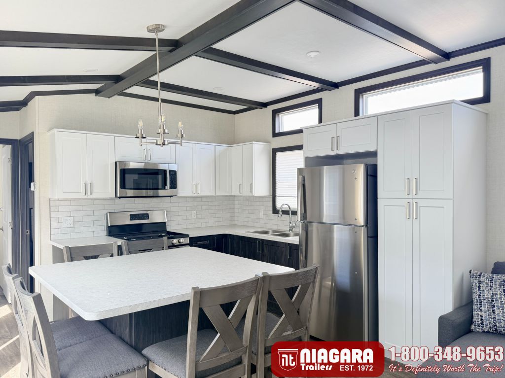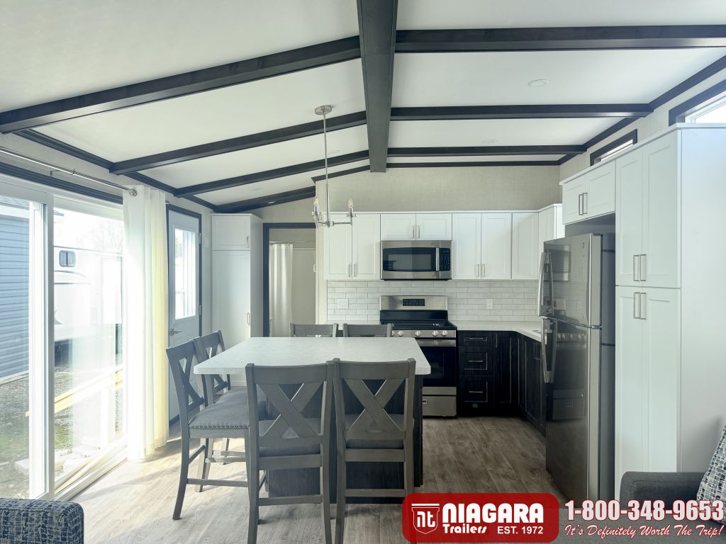 Vaulted ceilings and banks of windows flood your space with light and comfort – allowing you to experience the great outdoors – indoors! As with all Northlander park models, the Escape is designed and built without sacrificing quality or discomfort – and is customizable! It’s time to leave the ordinary behind and ESCAPE to something extraordinary!