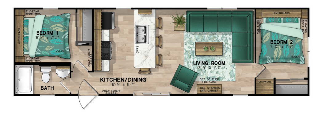 With one-, two and three-bedroom plans to choose from, the Reflection is sure to accommodate you and the needs of your company. Northlander comfort and quality is standard; you can be assured your vacation retreat will stand the test of time. Find beauty in simplicity. Take pride in your Reflection!