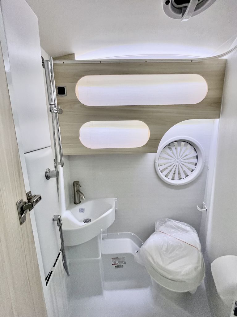 - Wet bath includes shower, sink, and toilet