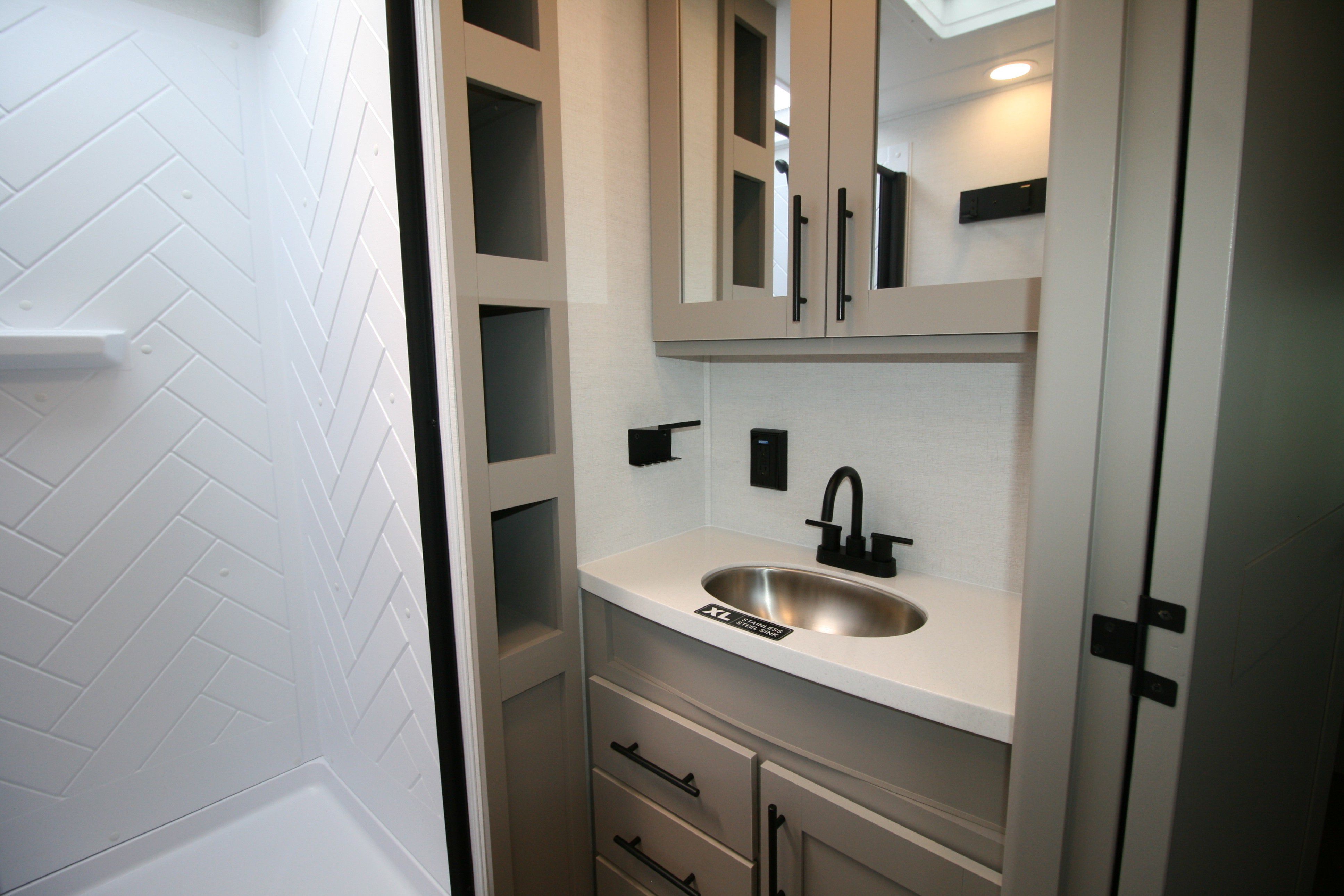 - Full Width Oversized Exterior Ladder w/ built in Towel Rack