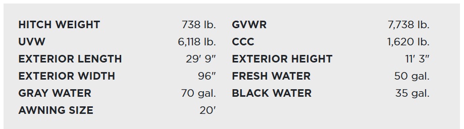 Premium exterior graphics, aluminum wheels with spare tire carrier, solid entry steps, extended grab handle, magnetic door catches and keyed-alike compartment doors — all geared to deliver convenience, durability and a clean, coordinated exterior.