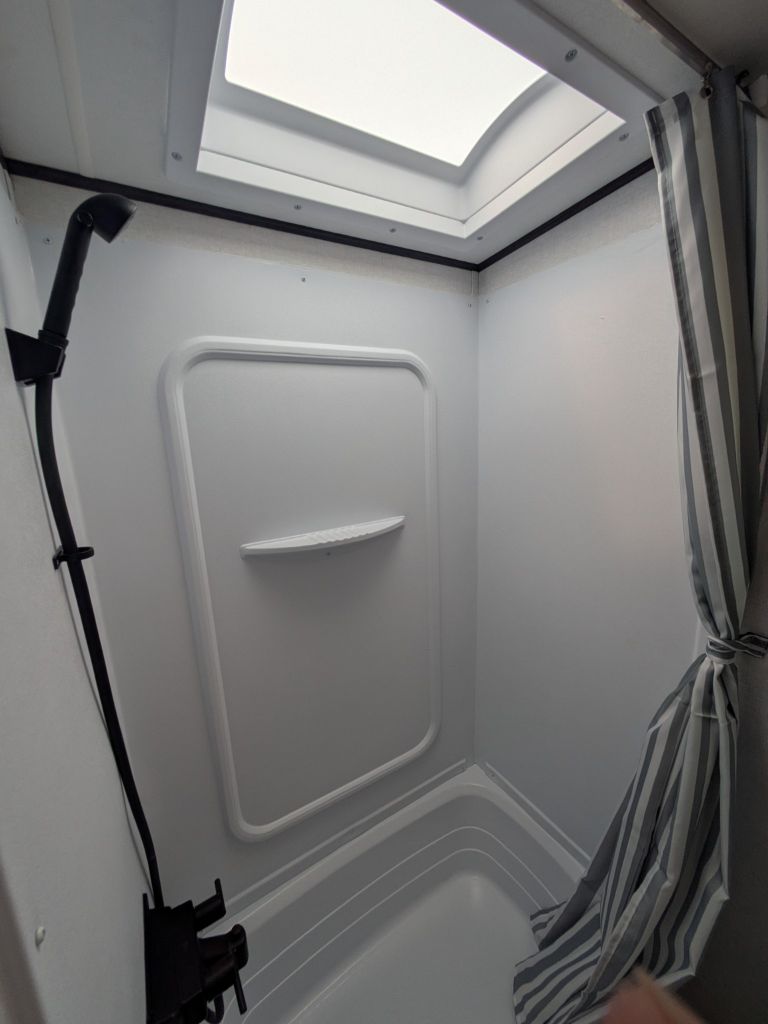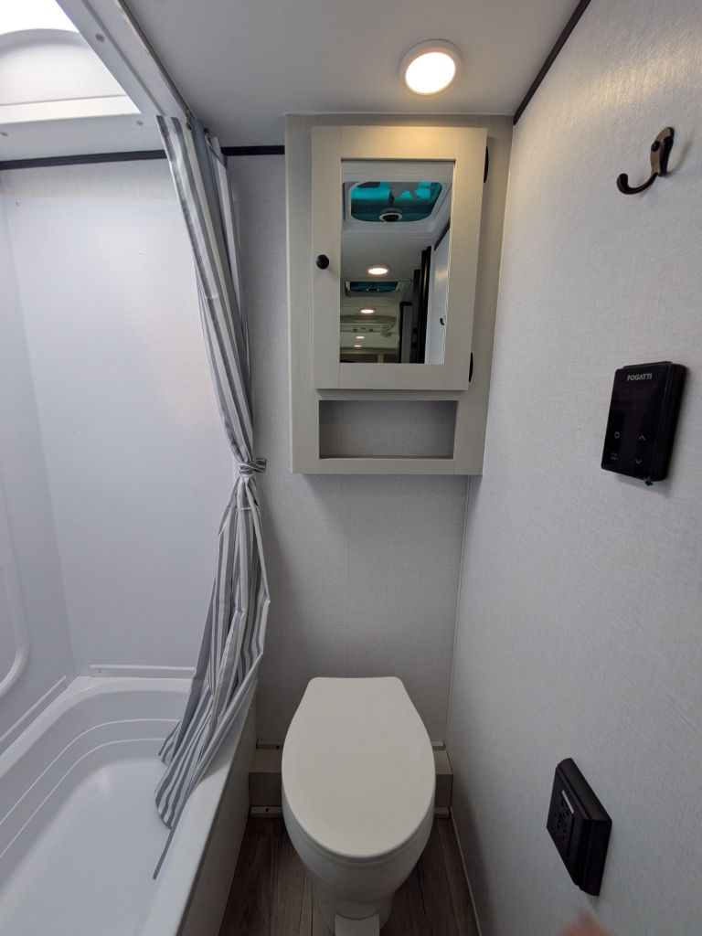 The full rear corner bathroom adds convenience and comfort to your travels with a standard shower, vanity and medicine cabinet, making morning routines easier for everyone. Large windows and thoughtful storage throughout the trailer help keep the interior bright and organized, so you can focus more on relaxing and less on clutter.