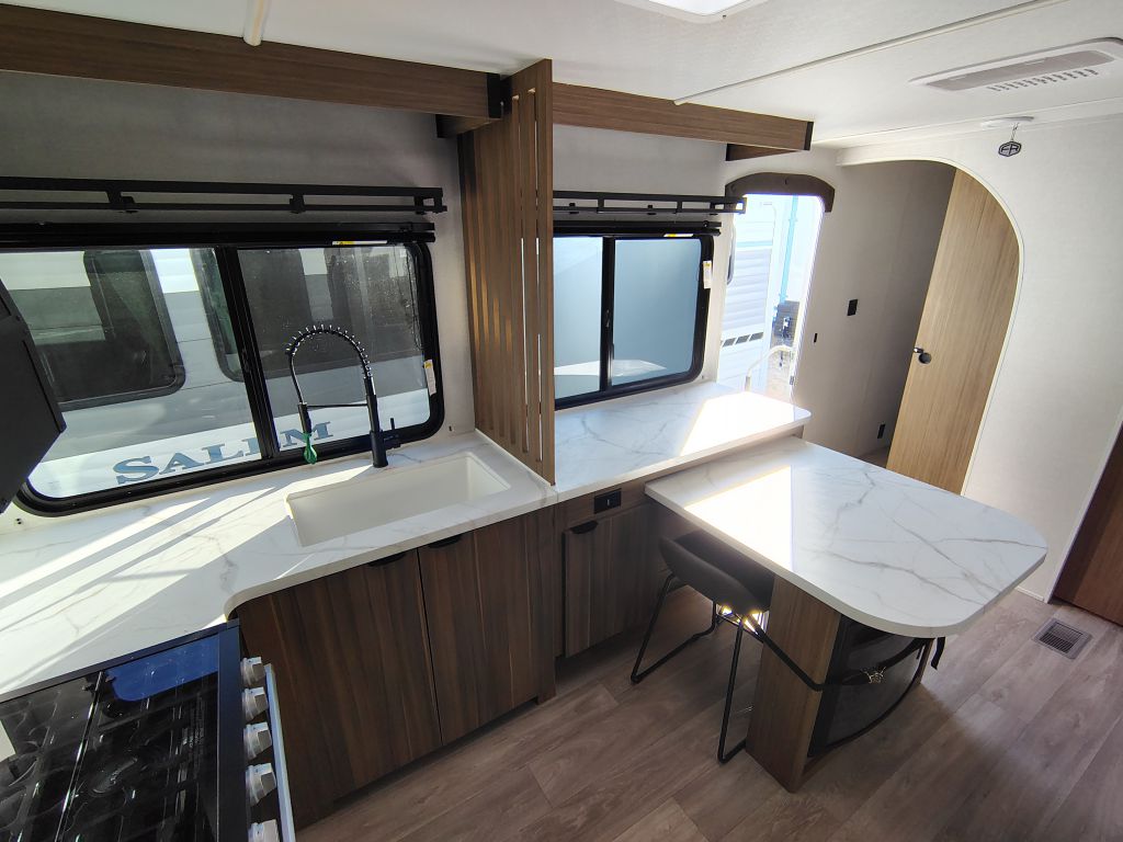 The Salem 300ICE is Loaded Versa Furniture • Stow N Go Storage Solution • MorRydeTM StepAbove Triple Step (Entry Door) • TFL Cabinet Doors • Roof Mount Solar Prep • Adjustable Textured Roller Shades • Backlit Radius Bathroom Mirror • Built-In Laundry Hamper in Bedroomb • Back-Up Camera Prep • JBL Stereo • Flush Floor Slide-Out w/Marine Grade Flooring • Exterior Accent Lighting • Dimmable Interior LED “Blade Lighting” (Living Area) • Heated & Enclosed Accessibelly • LED “Blade Lighting” Under Awning • 60K On-Demand Tankless Water Heater • 5/8” Tongue & Groove Plywood Floor Decking • Tufflex™ PVC Roofing • Powder Coated I-Beam Frame • 3/8” Roof Decking (Walk-On) • Cambered Chassis • Nitrogen Filled Tires • 2” Wall Construction • 16” (or less) on Center • Aerodynamic Front Radius Profile • .040 Smooth Aluminum Front Cap • 5” Bowed Truss Roof Rafters • 2”x 3” Floor Joists 12” on Center • 13 Ply Cross Micro-Laminated Beam Header Above Slide-Out • Seamless Holding Tanks • Color Coded Water Lines • Outside Shower