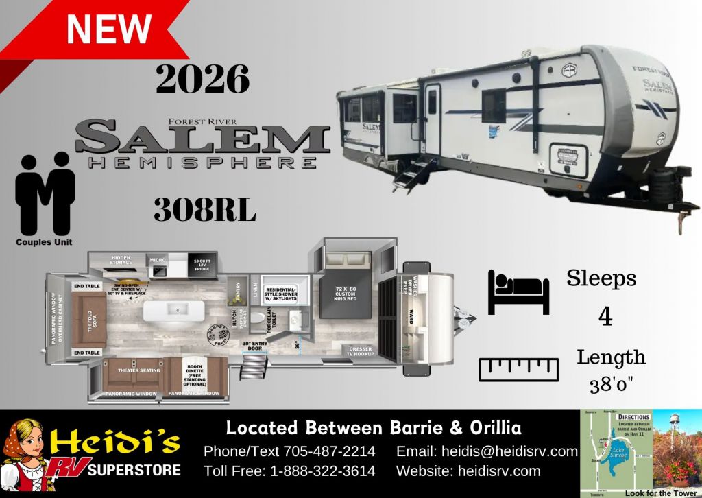 Discover Your Ideal RV at Heidi's RV Superstore, Proudly Serving Simcoe County ("Cottage Country"), including Barrie, Orillia, Innisfil, Collingwood, Wasaga Beach, and Beyond. Conveniently located ~1 hr North of Toronto on Hwy 11 in Oro-Medonte. Explore our extensive inventory online at www.heidisrv.com or Call Toll-Free 1-888-322-3614 for Expert Assistance