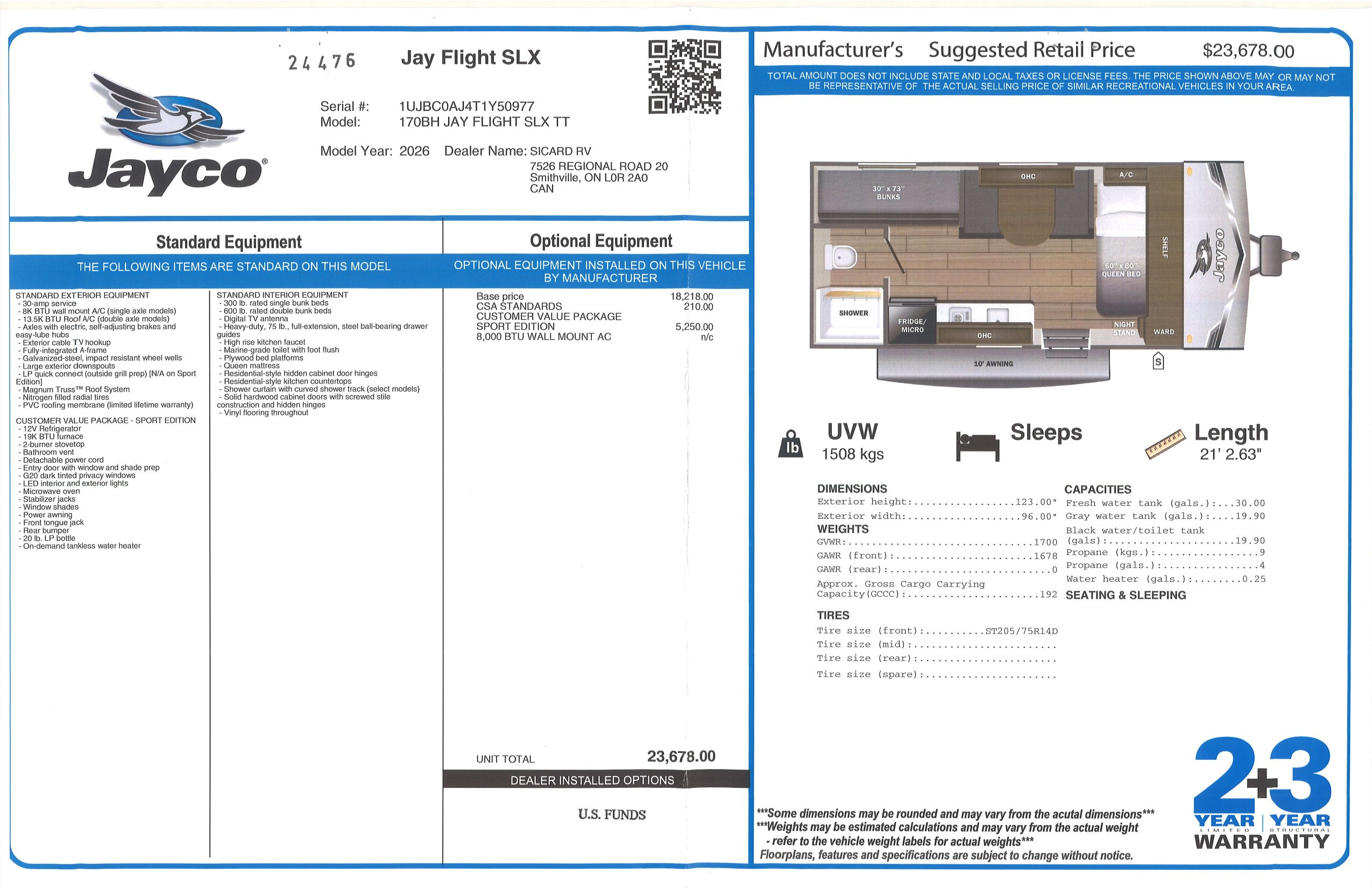 | ManufacturerJAYCO | Sleeps4 person(s) |