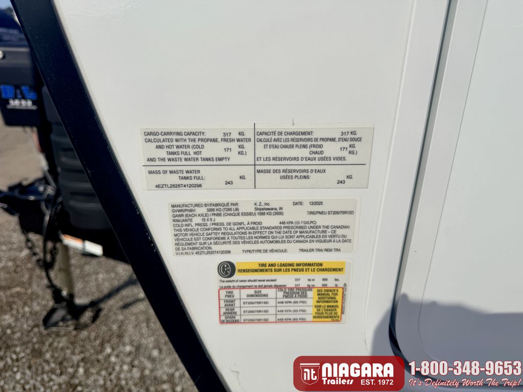- KZ Engage: Powered by OneControl (monitors: battery levels, controls: slide rooms, leveling system, awning(s), inside/outside lighting, TPMS prep)
