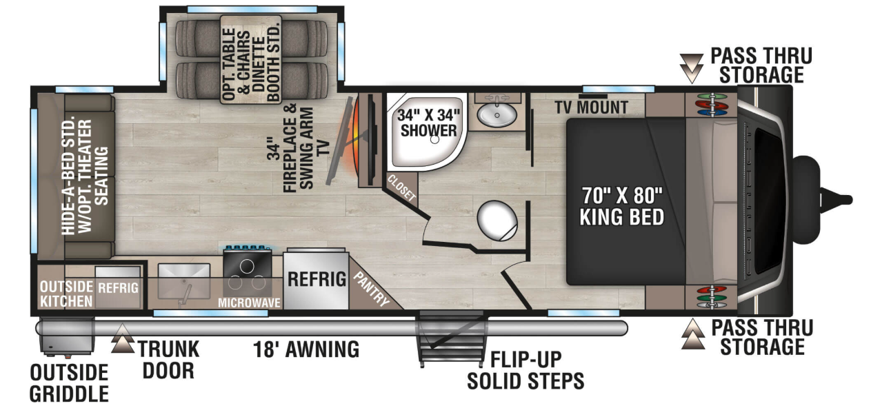 • Exterior Docking Station: Black Tank Flush, Fresh Tank Fill, Pressure Fill, Outside Shower & Cable Hookups