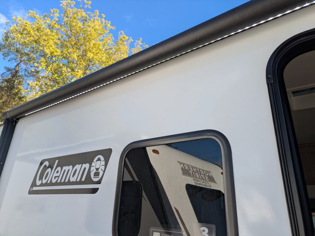 Exterior Features: Comes with a power awning for shaded outdoor space, a diamond-etched rock guard for durability, and is prepped for a backup camera to assist with parking and maneuvering.
