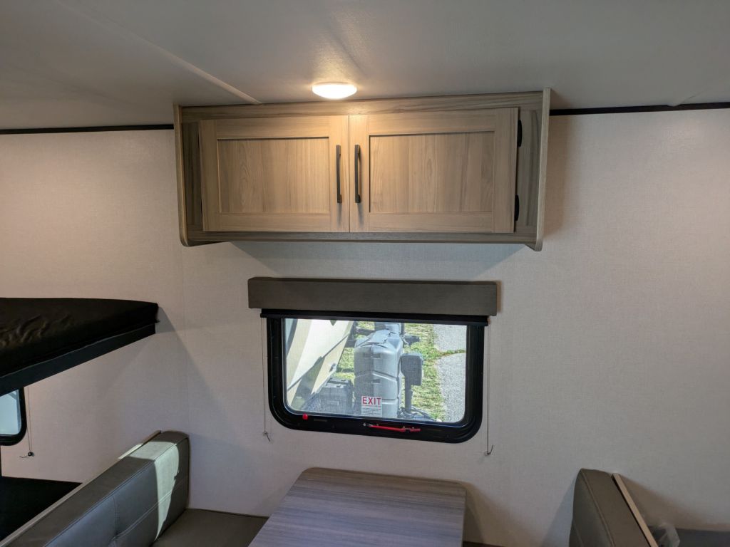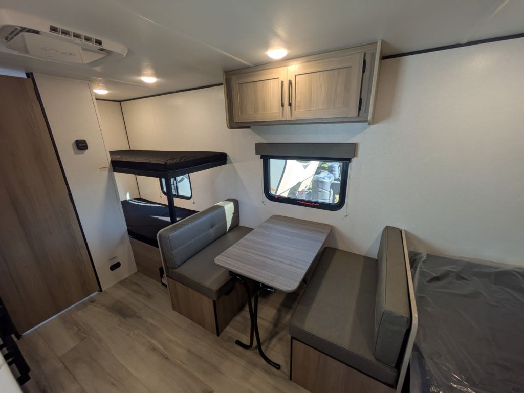 Sleeping Capacity: Accommodates up to five people with a queen bed, two single bunk beds, and a convertible dinette.
