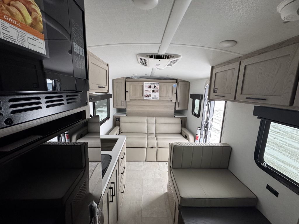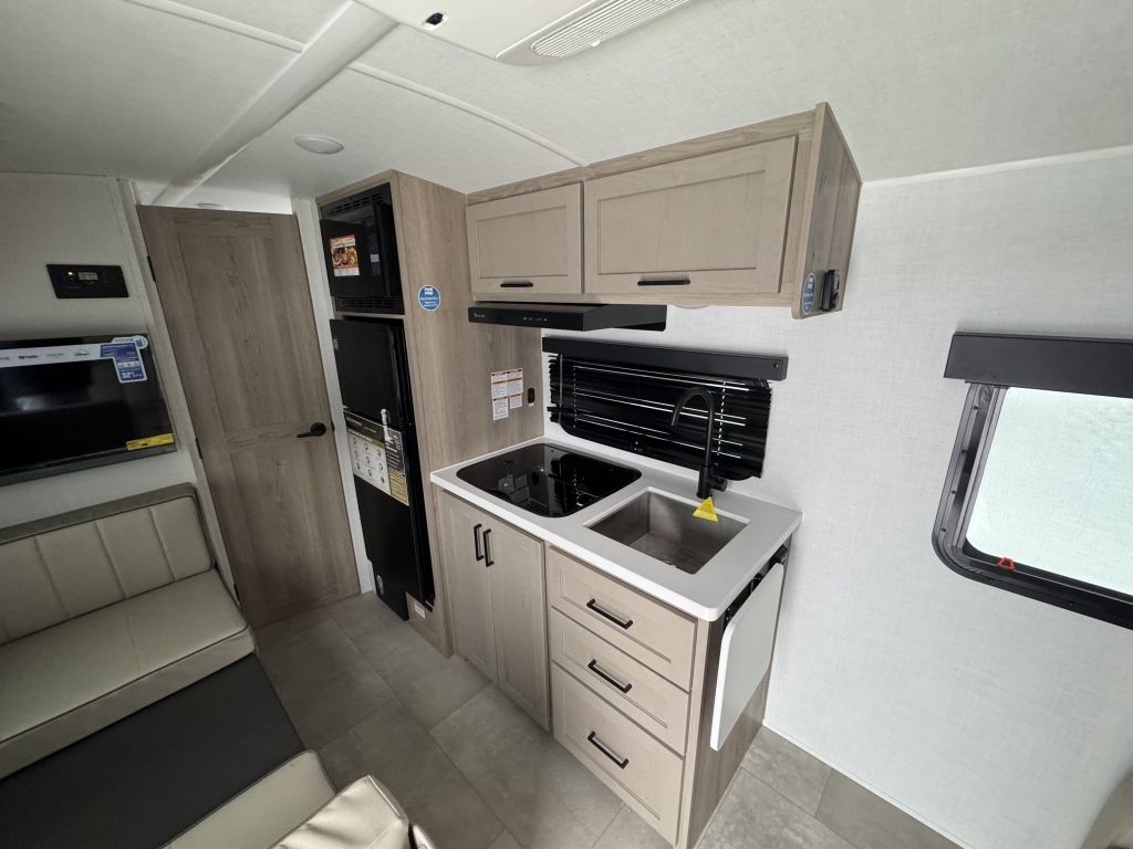One of the best parts of the 19FD’s layout is the front kitchen area, thoughtfully designed to make meal prep easy and convenient while you’re camping. You’ll find: