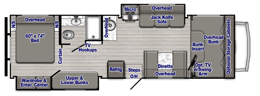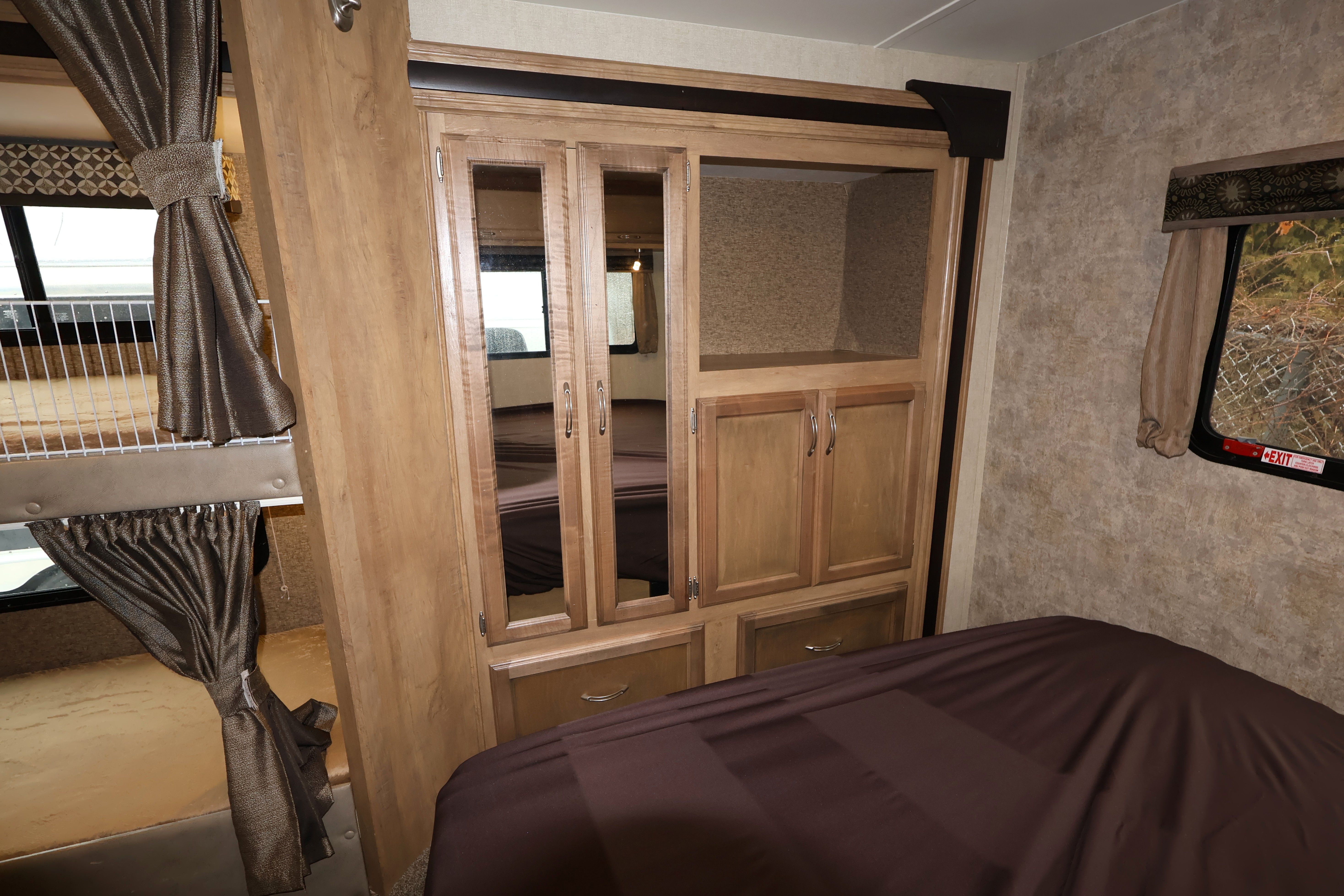 - Cab-Over Bunk with Removable Insert & Privacy Curtains