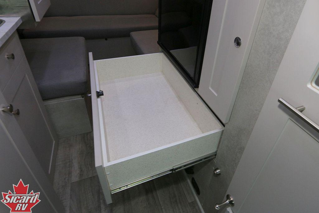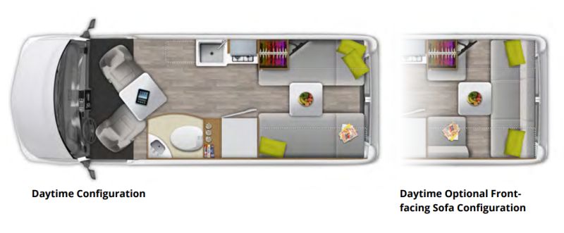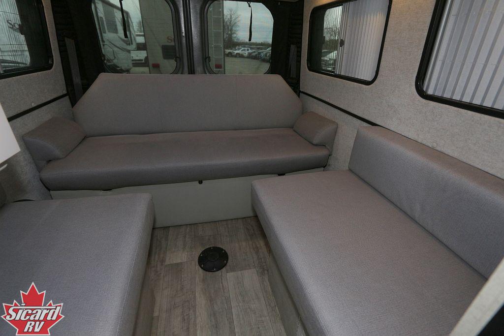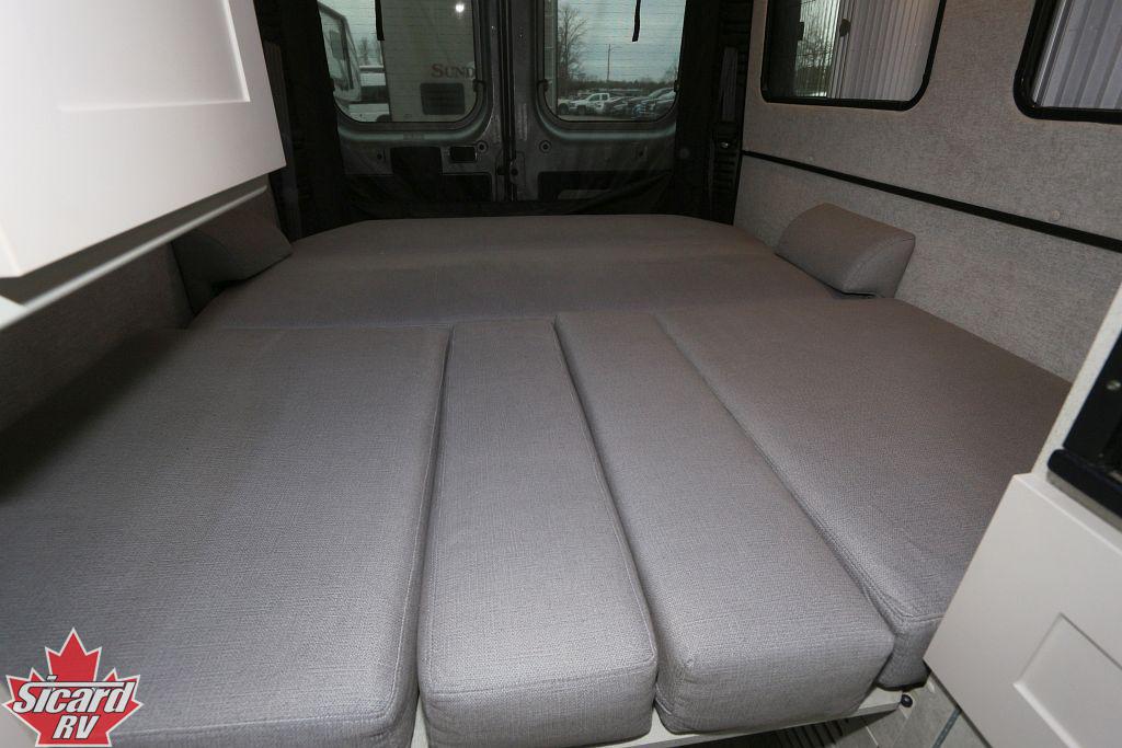 Inside the Play, you will find a power motion sofa in the rear that converts into a bed providing a comfortable sleeping space at night without sacrificing the extra living space during the day.