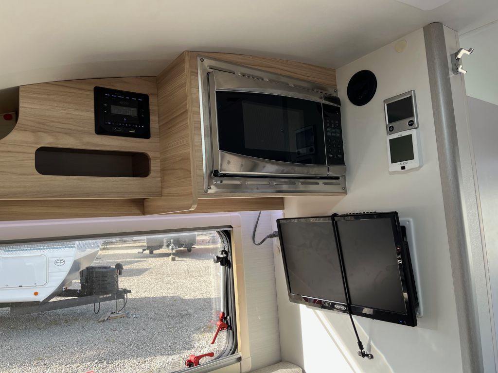 - Wet bath includes shower, toilet and side portal window