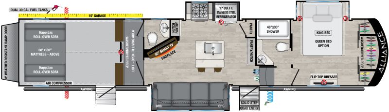 Introducing the 2022 Valor 41V15, from Alliance. The Valor 41V15 has space for your toys and all the gear that goes with them. This toy hauler fifth wheel sleeps up to 8 people.
