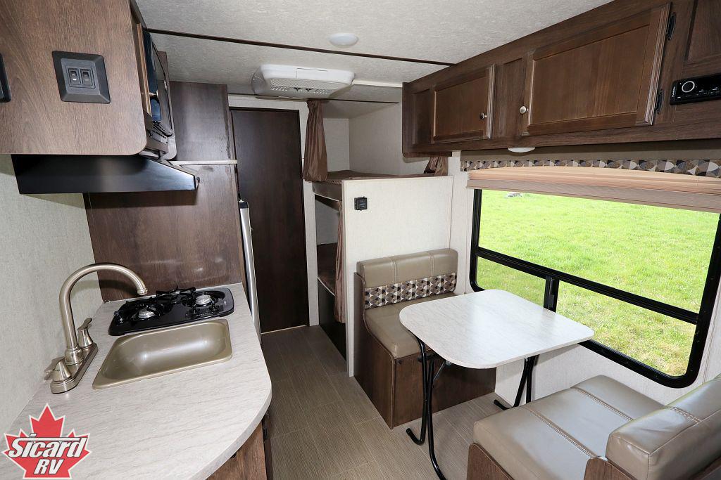 Inside the Launch 17BH, you will find a bench dinette that converts into a bed providing additional sleeping space when required, as well as bunk beds.