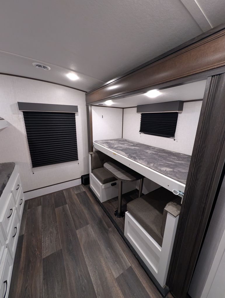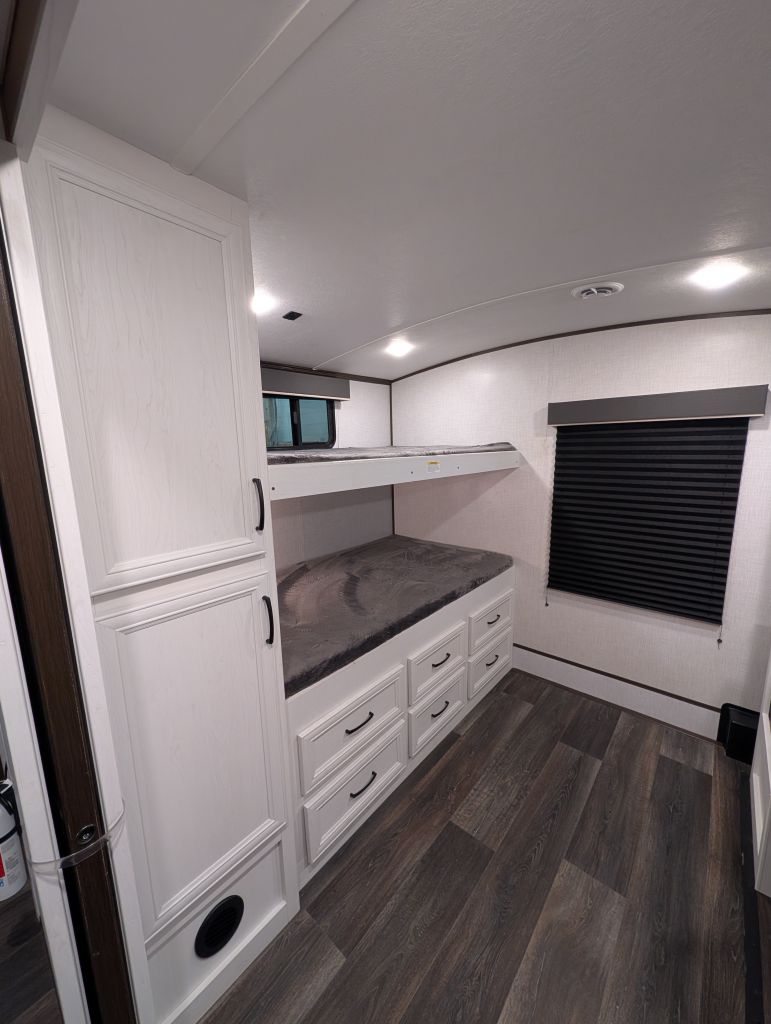Looking for a spacious, modern travel trailer for the whole family? The 2022 Atlas 3202BH offers an excellent bunkhouse floorplan with 2 slide-outs, dual entry doors, a private bunk room, outdoor kitchen, and a king bed in the front bedroom. This layout is perfect for families who want plenty of sleeping space and great camping features.