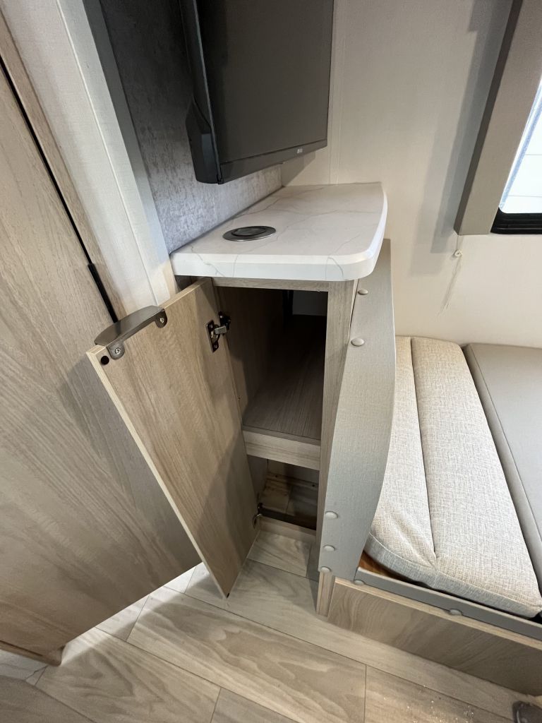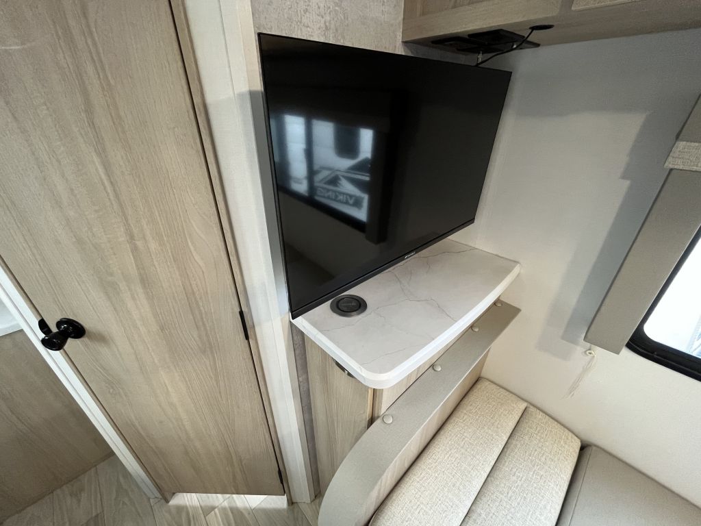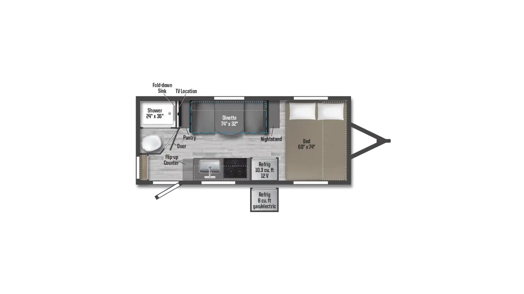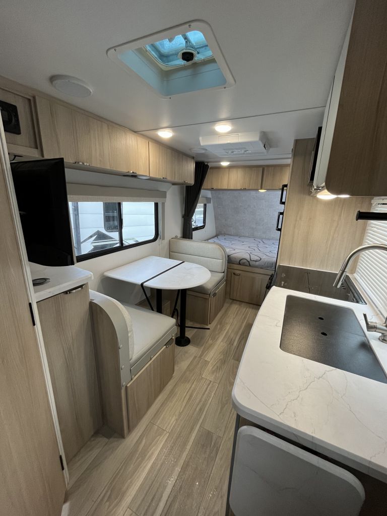 - Sleeps 3- front queen bed and a dinette that converts to a bed