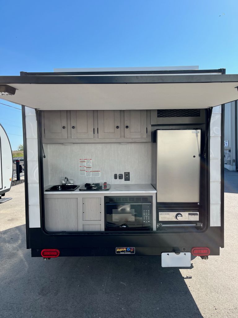 Lightweight trailer with large outdoor kitchen, awning and roof rack!