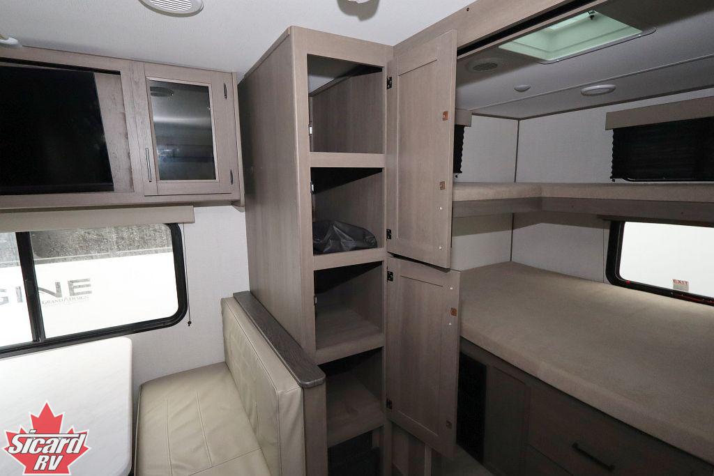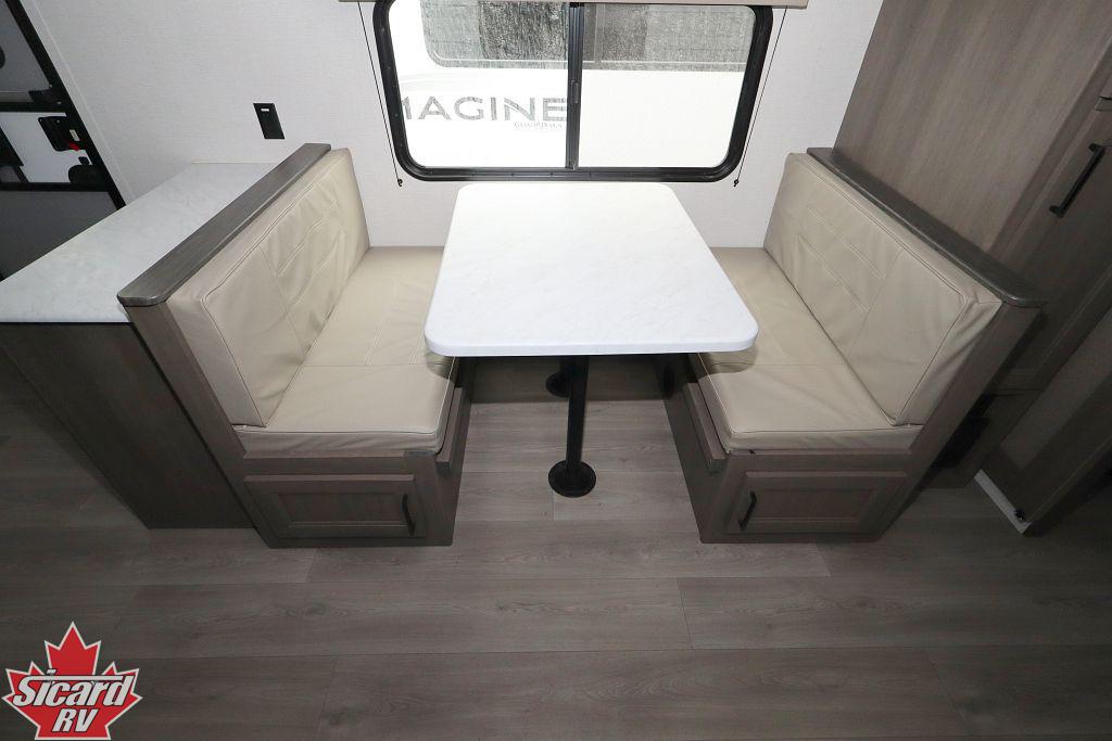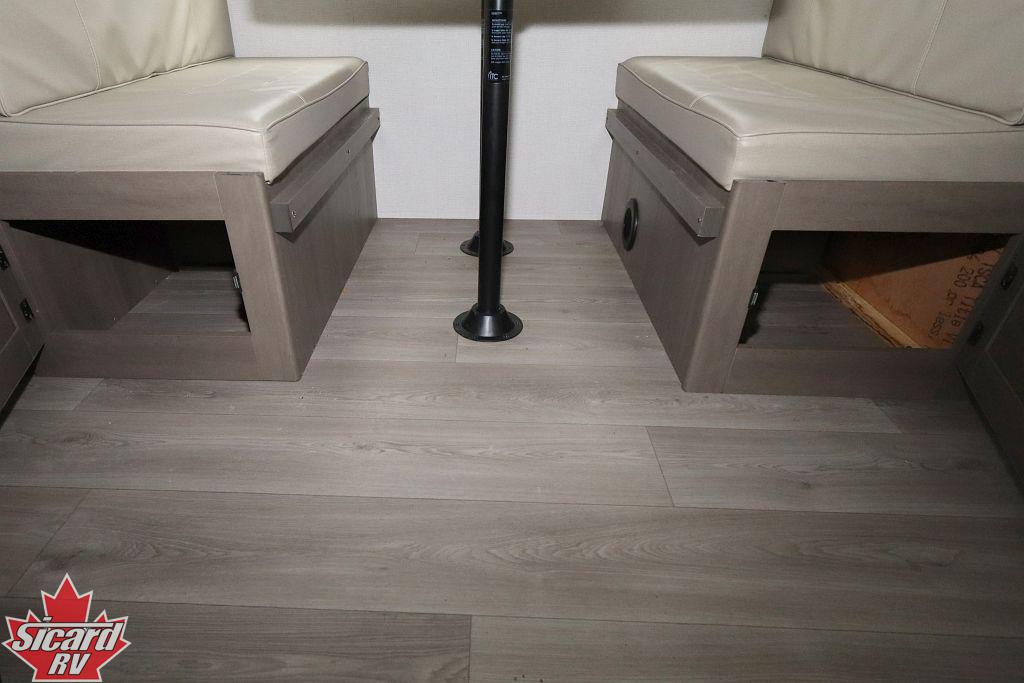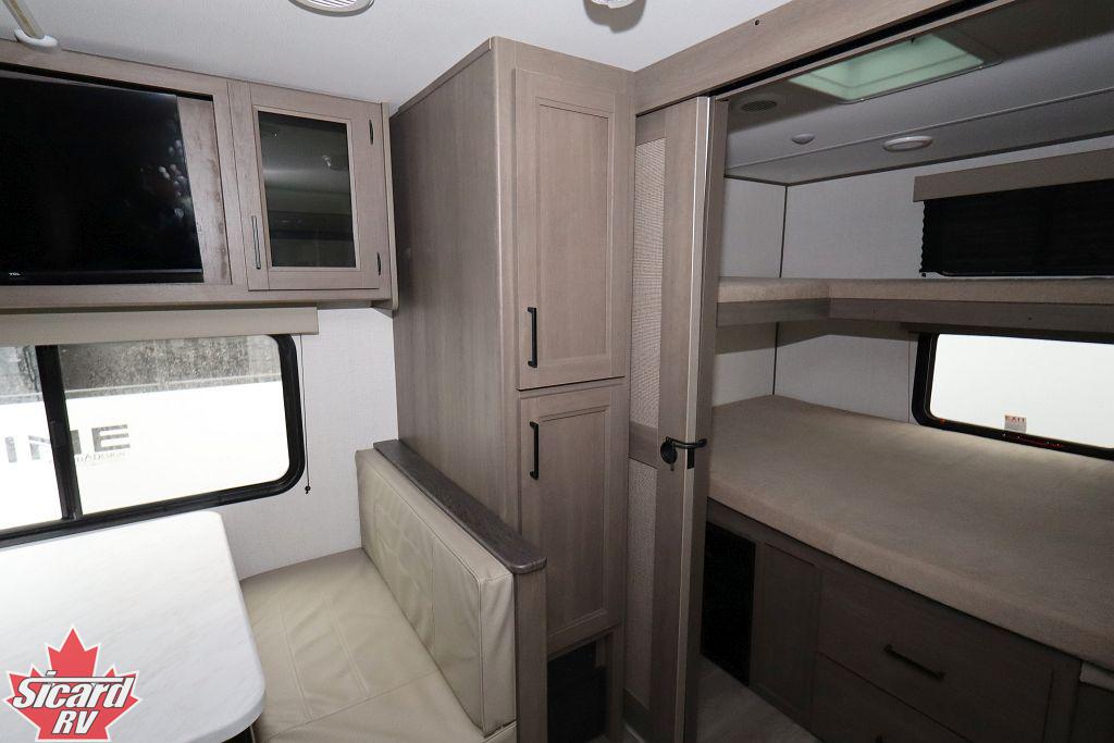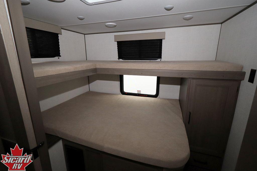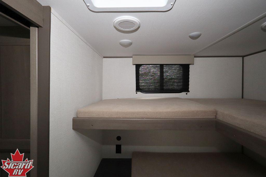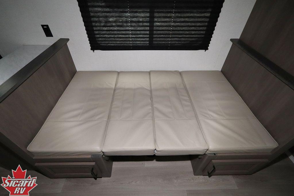 Inside the Transcend 295QBT, you will find a rear bunk room providing plenty of extra sleeping spaces as well as a four seat bench dinette.