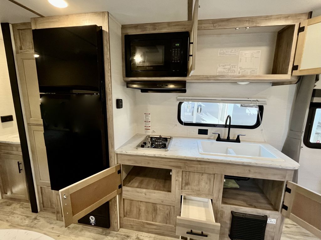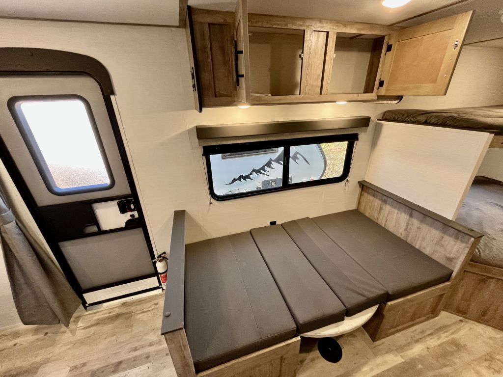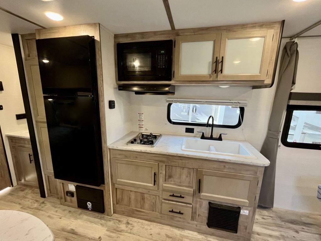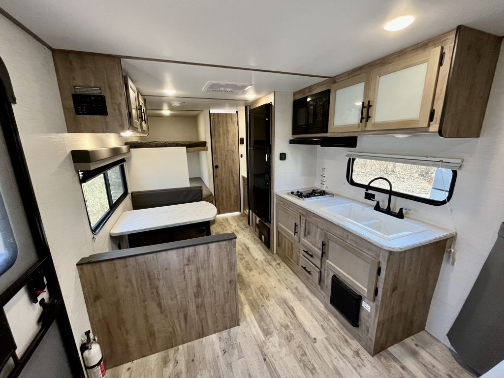 Spacious, family-friendly, and built for effortless weekends — the 2025 Grand River 268BHS offers a full-sized super slide, double-over-double bunks, and a 2-door master bedroom with queen bed in a lightweight, easy-towing package. With a dry weight of only 3,899 lbs and a length of 23.5', this trailer is towable by many mid-size vehicles yet packs room to comfortably sleep up to 8. Thoughtful features include a 15K BTU A/C, tankless hot water heater, Bluetooth soundbar, and a full 3-burner range with oven, all wrapped in a durable aluminum exterior.