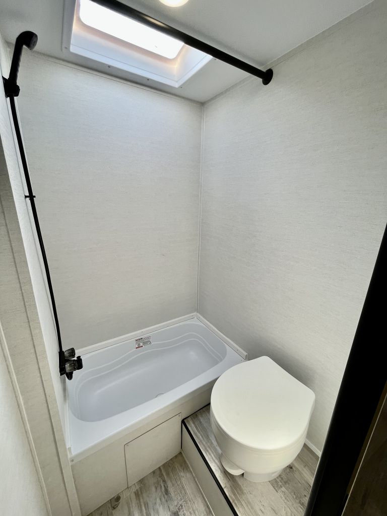 Standard features like a tankless water heater, exterior shower, and Bluetooth soundbar make every trip smoother.