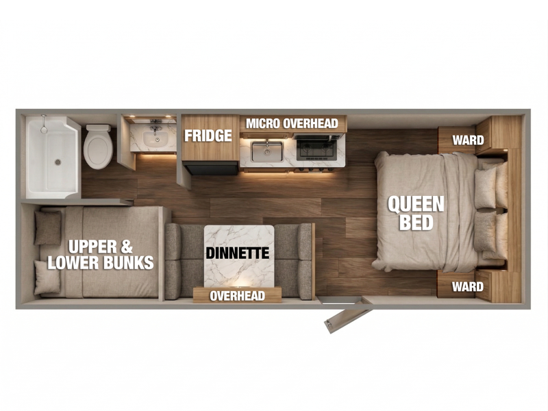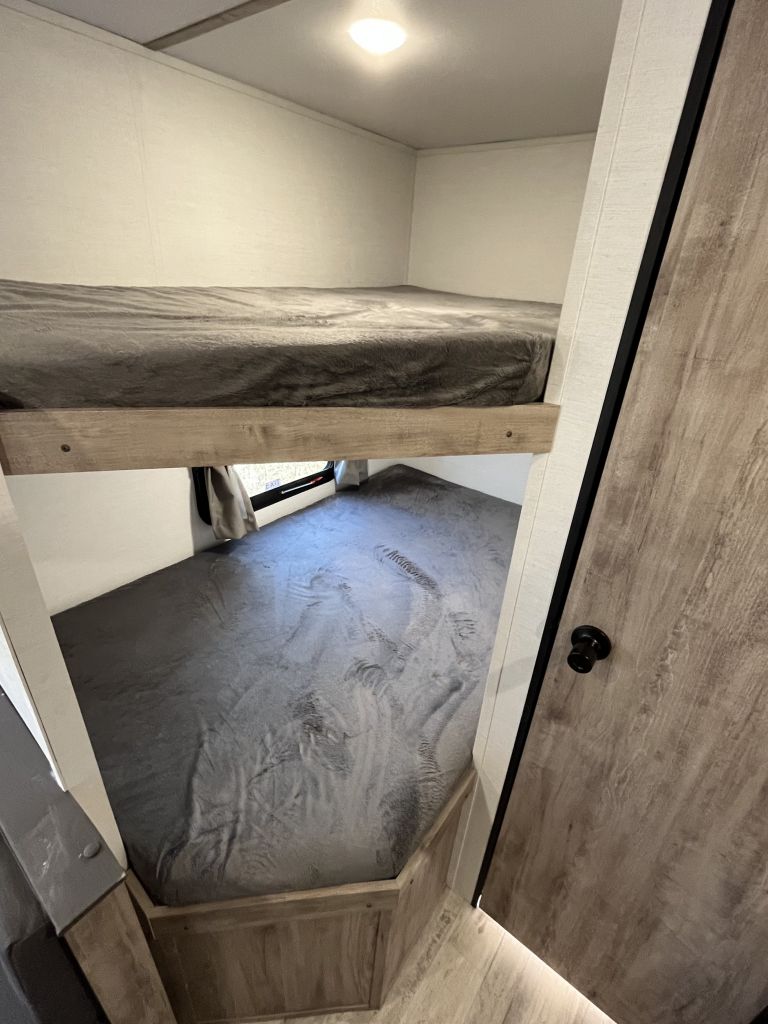 Double Bunks, Double Comfort — Full-size rear bunks sleep kids or guests with ease, each rated for 250 lbs.