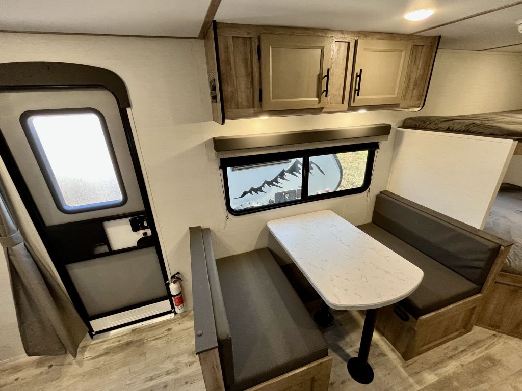 The 15K BTU A/C and 20K BTU furnace keep the cabin comfortable across all seasons.