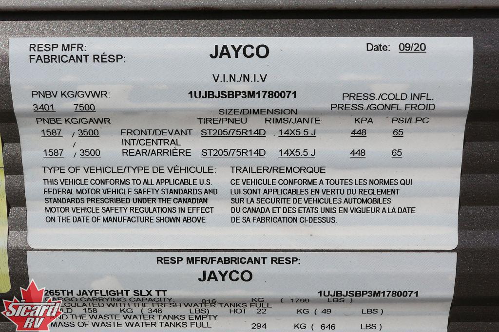 2021 JAYCO JAY FLIGHT SLX 8 265TH