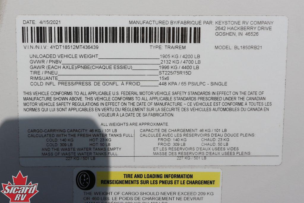 2021 KEYSTONE BULLET 1850RB
